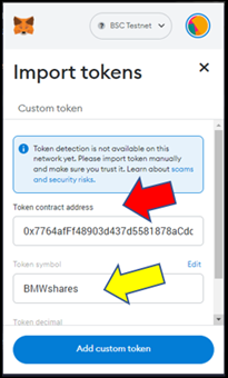 Acreditamos los 100 millones de tokens BMWshares (flecha amarilla).