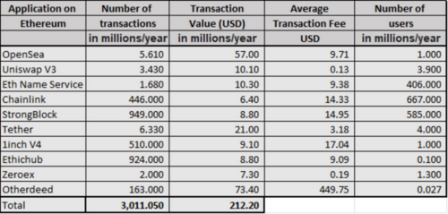 En la introducción se indicó que actualmente hay más de 3,000 dapps, funcionando en el blockchain Ethereum, las cuales generan transacciones y pagan los fees correspondientes, para ilustrar hemos seleccionado los pagos que realizaron en un año 10 de las dapps más importantes según Bitcoin-Market-jornal: