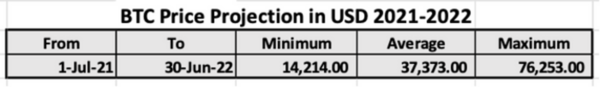 La previsión de precio promedio para el año 2022 fue de 37,373 USD, en lo que va del año el precio promedio de BTC se ha mantenido entre 40,000 y 35,000 USD, en mayo.